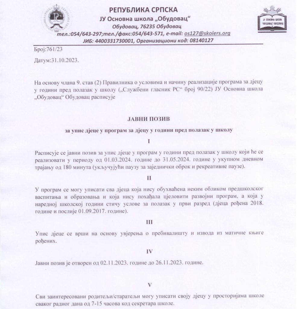 ОШ „Oбудовац“, Обудовац ,општина Шамац, 76235 Обудовац